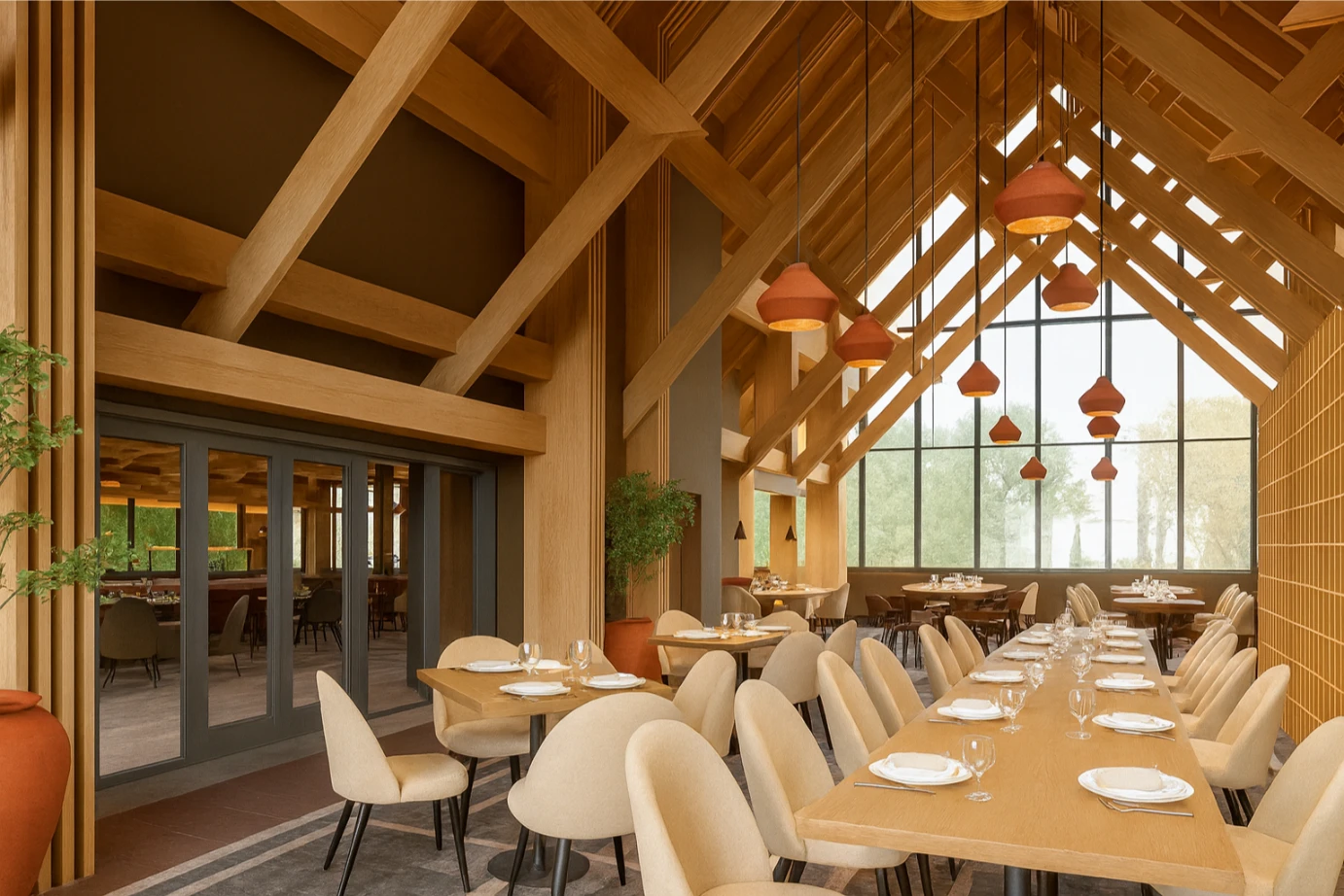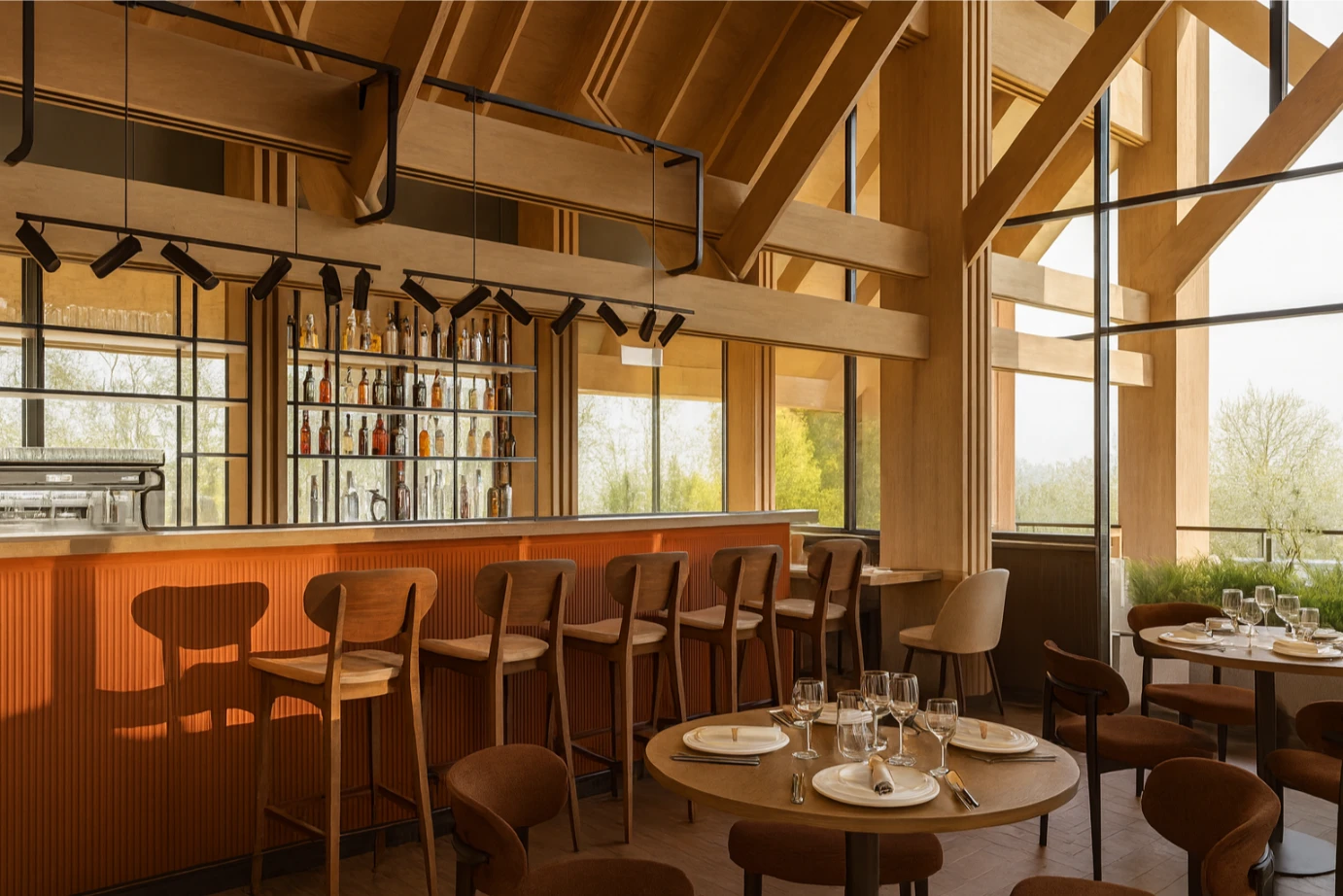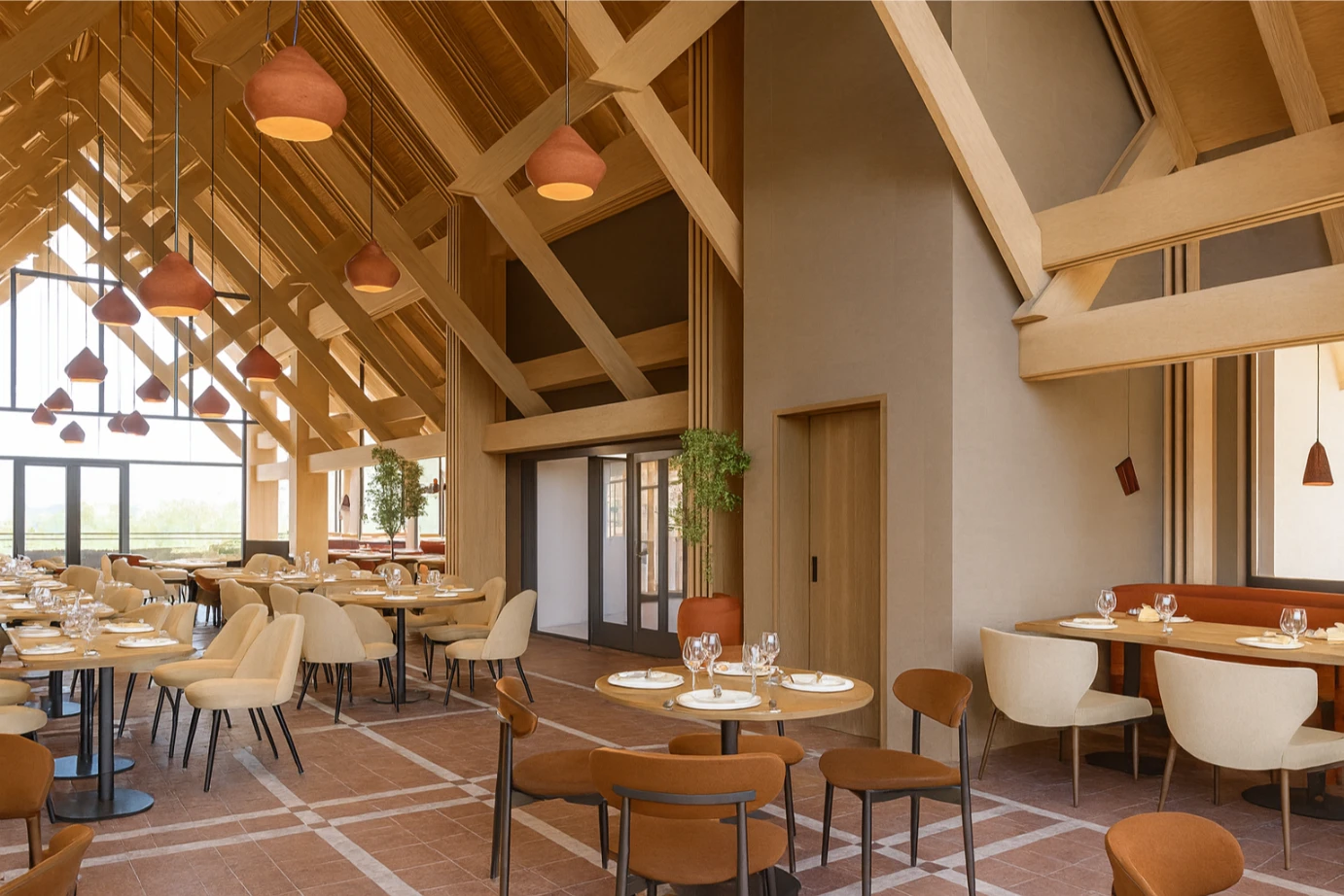 Situat la etajul clădirii principale, Restaurantul LIVADIE este un spațiu în care arhitectura, lumina și peisajul se împletesc într-o experiență gastronomică unică.